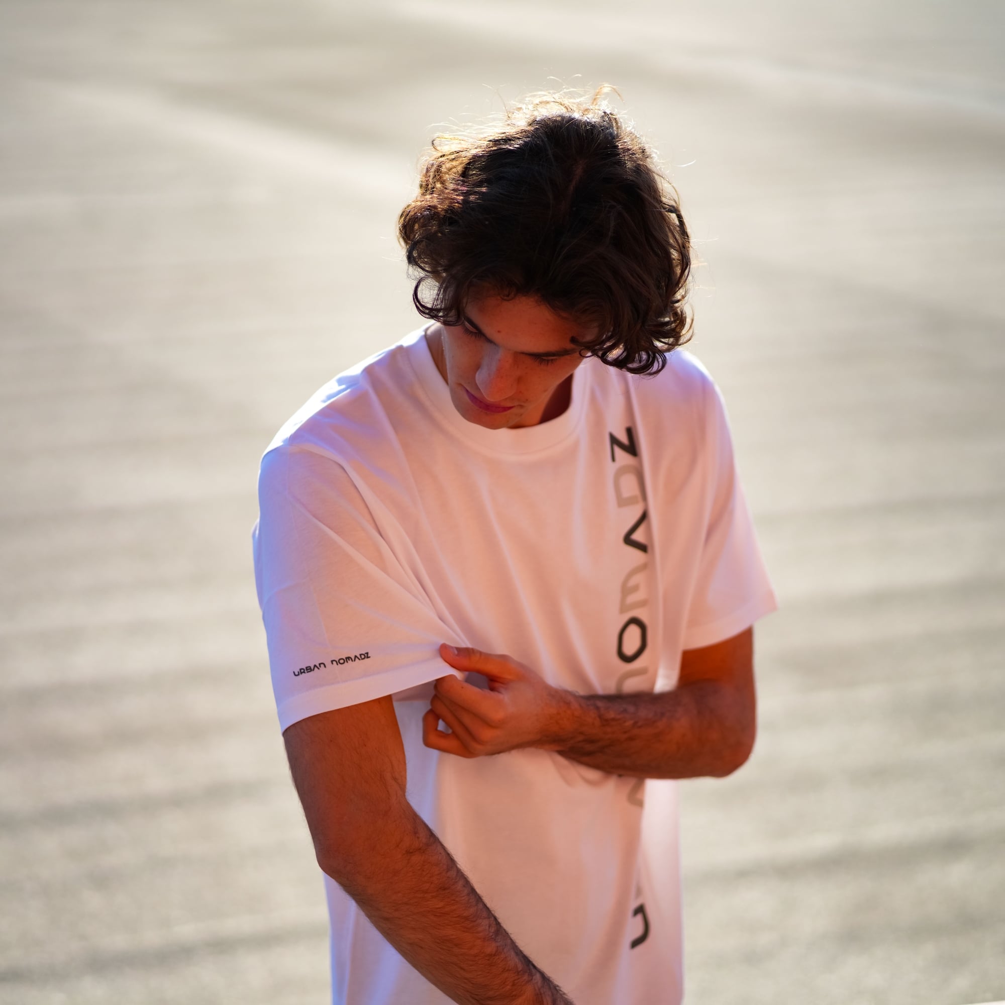 Il capo versatile della collezione T-SHIRT Urban Nomadz girocollo con stampa per esteso del brand a contrasto in verticale